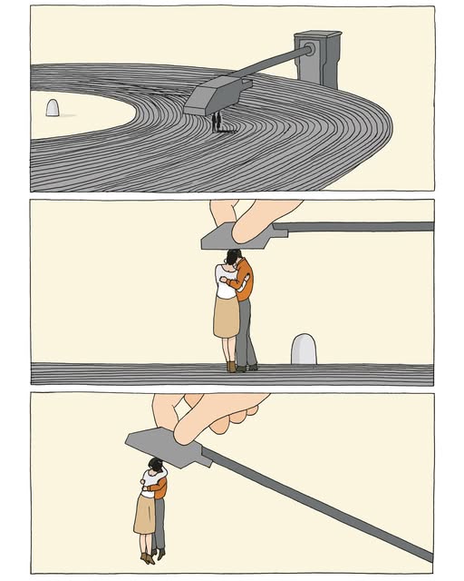 Je retiens la richesse de nos échanges. Ce n’est pas le tout d’avoir une envie réciproque de travailler ensemble, encore faut-il trouver le sujet qui nous unisse. Le thème, qui finalement s’est imposé assez vite, a été celui de l’errance. Puis on s’est vu régulièrement, la plupart du temps chez moi autour d’une tasse de thé, pour construire pierre par pierre l’histoire d’Anton et Hélène, celle d’un homme un peu perdu qui est à la recherche de quelque chose, mais de quoi ? C’est devenu une histoire d’amour faite de silence et de musique…